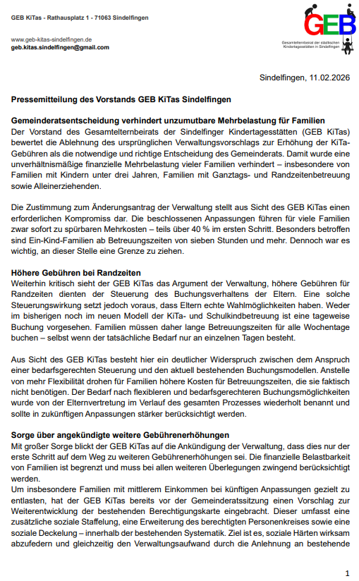 Pressemitteilung des Vorstands GEB KiTas Sindelfingen – 11.02.2026 GEB Veröffentlicht am 11. Februar 2026 Veröffentlicht in Uncategorized Keine Kommentare Pressemitteilung 11.02.2026 teilen teilen teilen teilen